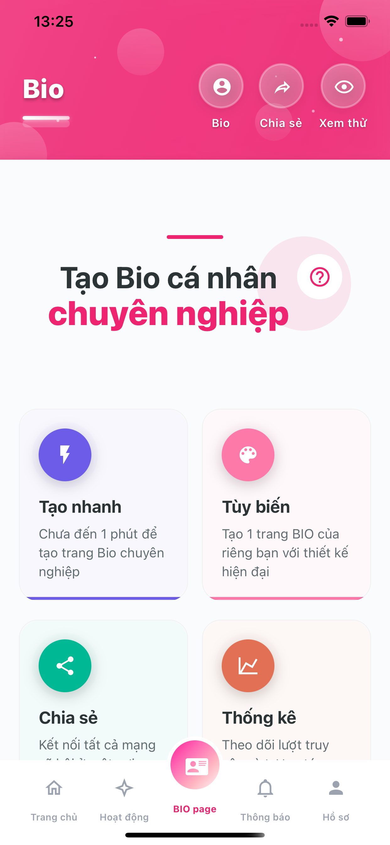 Tạo Bio chuyên nghiệp